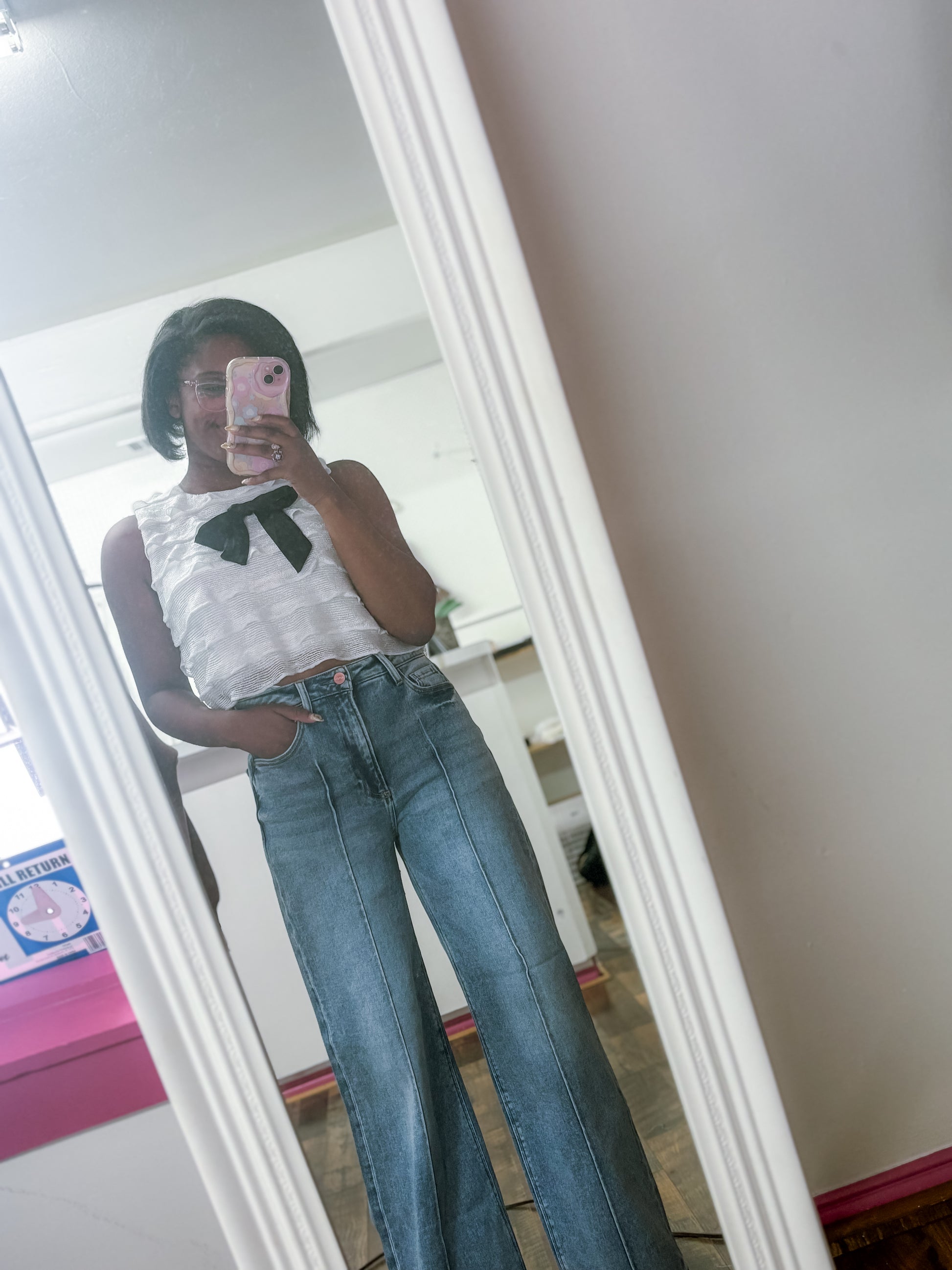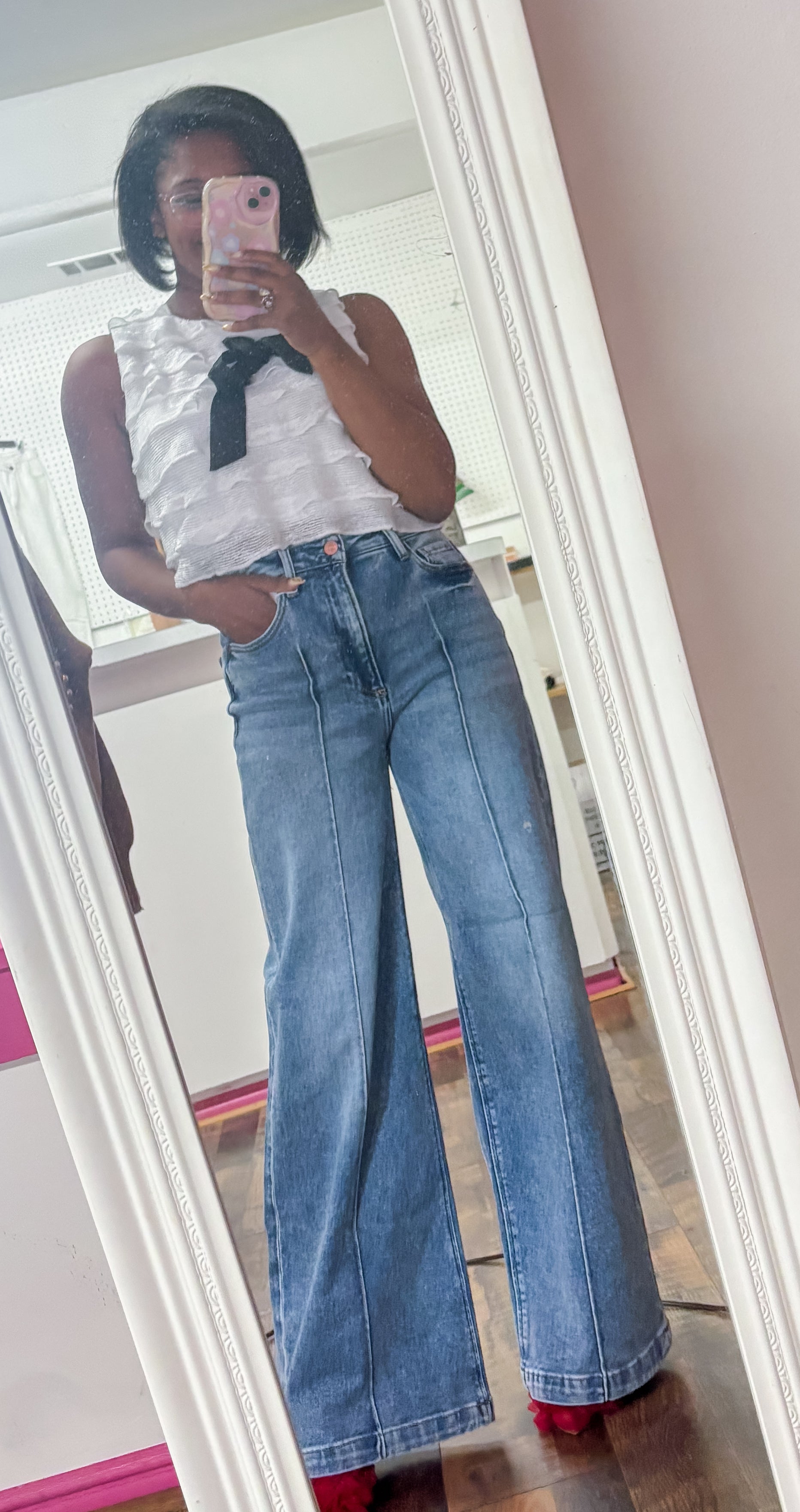 HIGH WAIST WIDE LEG PINTUCK DETAILED JEANS